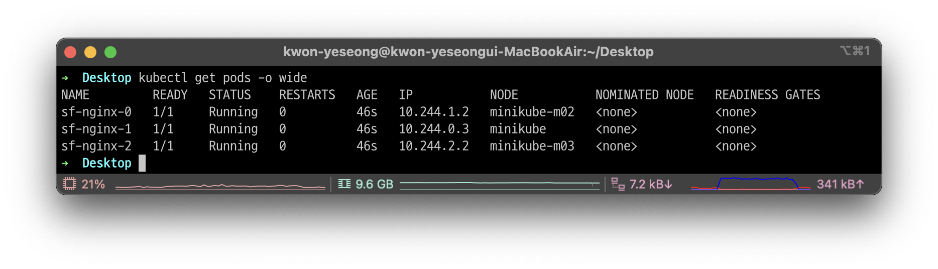 StatefulSet에 의해 관리되는 Pod의 이름은 'metadata.name + 번호'로 지정된다.